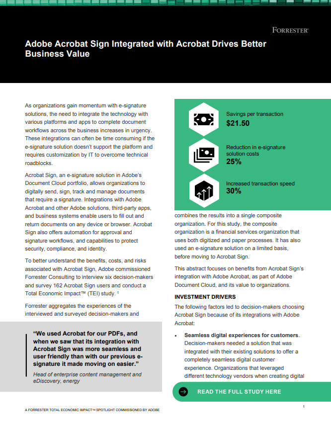 As organizations gain momentum with e-signature solutions, the need to integrate the technology with various platforms and apps to complete document workflows across the business increases in urgency. These integrations can often be time consuming if the e-signature solution doesn’t support the platform and requires customization by IT to overcome technical roadblocks.
